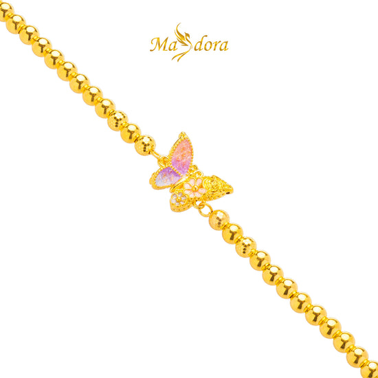 MASDORA 916 Gold Bracelet Rantai Tangan Emas ~ HG Butterfly Flora (Colourful) (EMAS 916/22K)