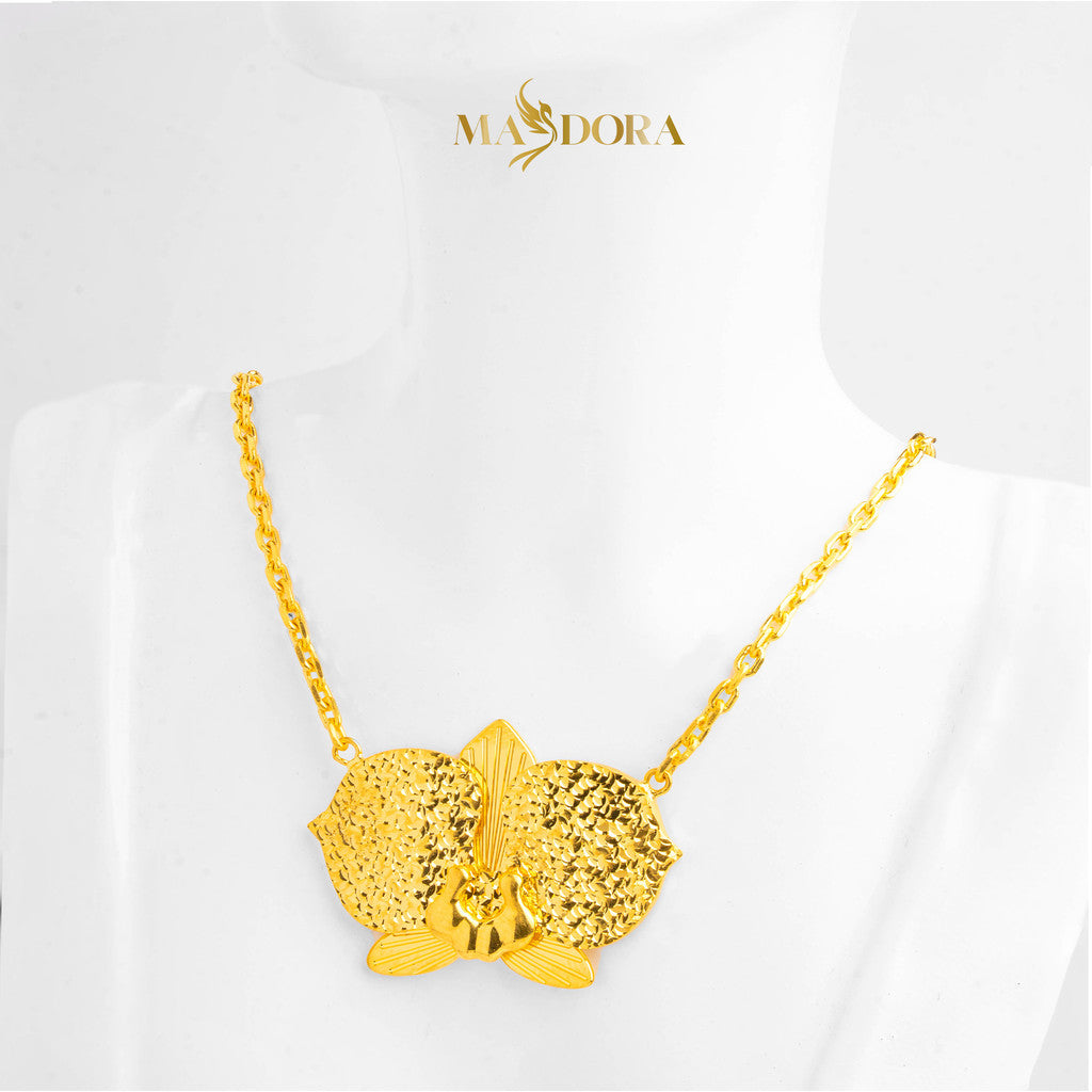 MASDORA 916 Gold Necklace Rantai Leher Emas ~ Mega Orchid - Seri Kuntum Collection (EMAS 916/22K)