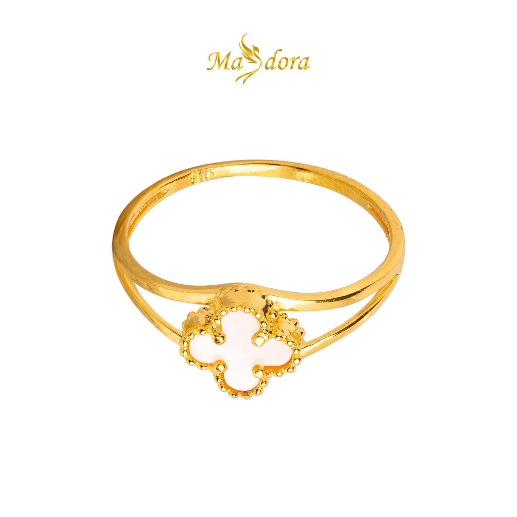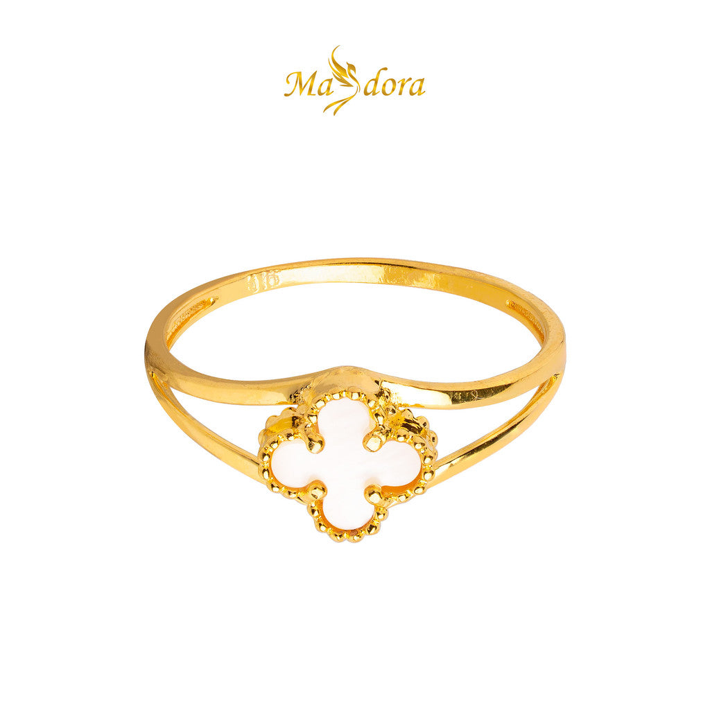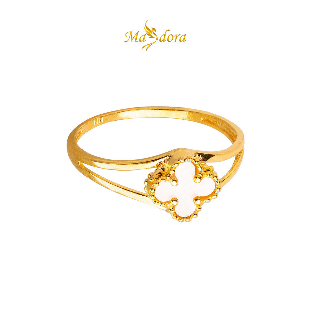 -The MASDORA 916 Gold Clover Bajet - White Ring is a stylish and affordable choice for everyday elegance. Featuring a delicate 6mm clover motif, this ring offers a sleek and minimalistic design that can be easily paired with any outfit. Crafted from high-quality 22K gold, it’s lightweight and comfortable, making it perfect for both daily wear and special occasions. The white clover detail adds a unique touch, making this ring stand out.