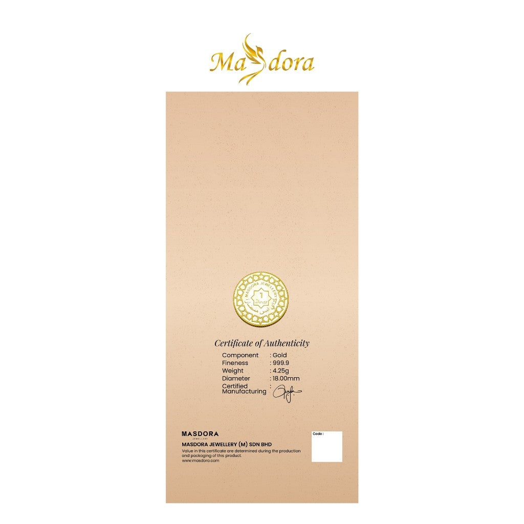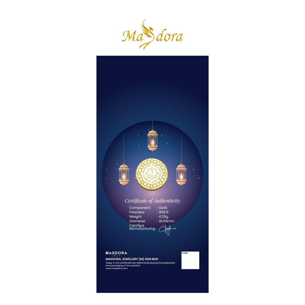 -The MASDORA 999.9 Gold 1 Dinar from the Gift Series ~ Pocket Dinar Raya Collection 2024 is a prestigious and meaningful piece crafted in 999.9 pure gold. With its intricate design and elegant presentation, this 4.25g dinar is perfect for commemorating special occasions or as a luxurious gift. Its design reflects the spirit of Raya, making it a treasured keepsake.