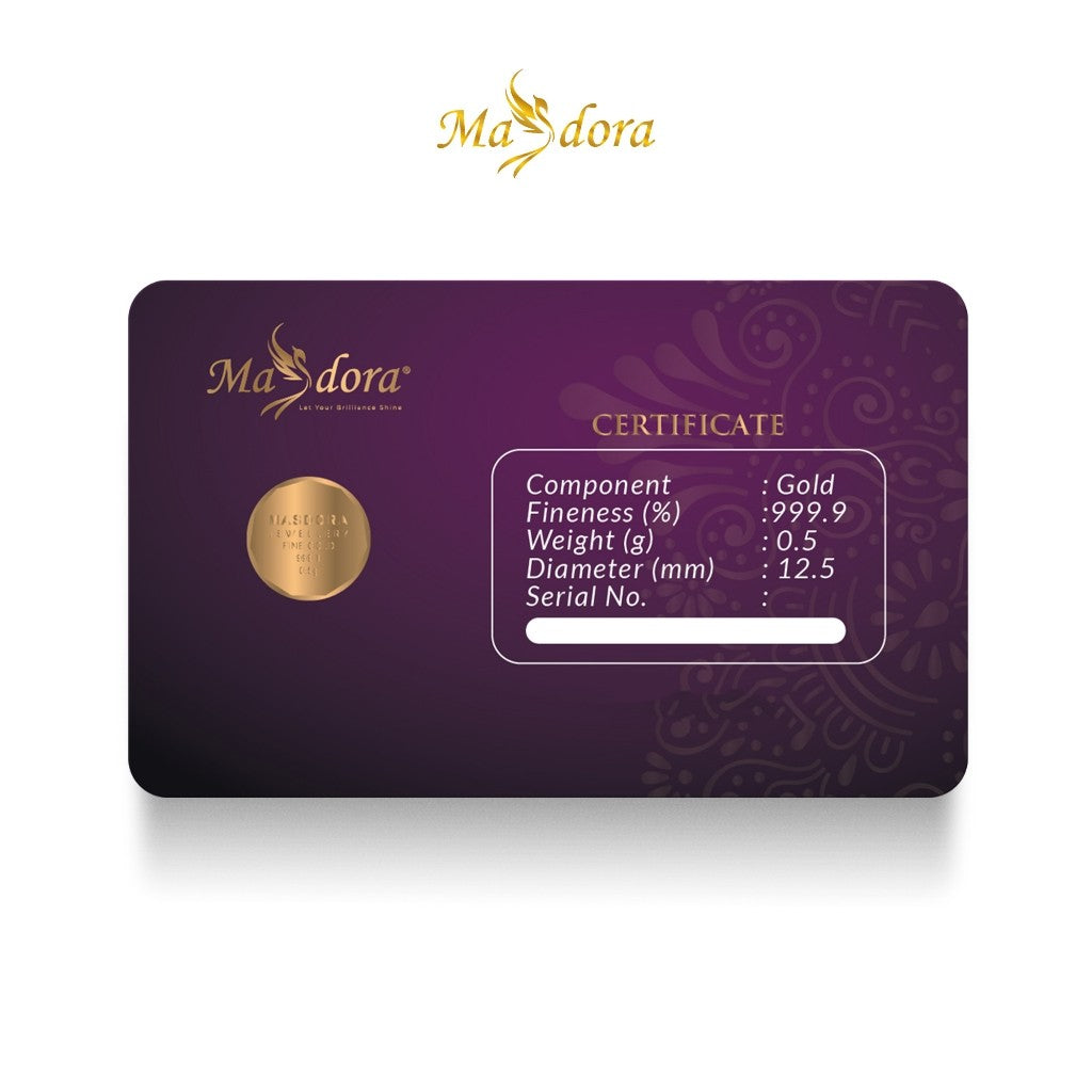 -The MASDORA 999.9 Gold Signature Gold Bar is a symbol of elegance and purity, crafted from 999.9 fine gold. Weighing 0.50 grams and housed in a sleek presentation card, this gold bar features a diameter of 12.5mm, making it a perfect gift for those who appreciate the finer things in life. Its high purity ensures lasting value and beauty.