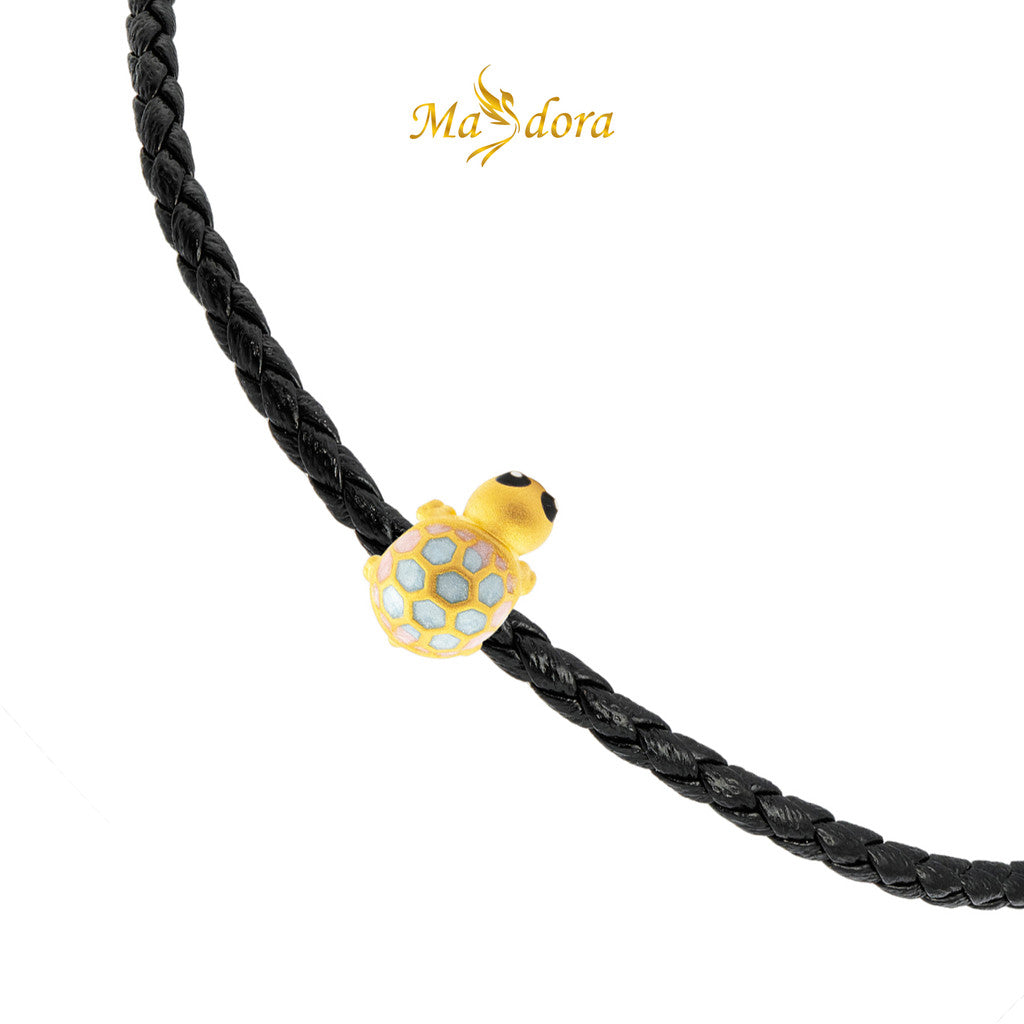 This limited edition 999 gold bead by MASDORA features intricate gold beads arranged in a circular pattern, creating a mesmerizing "Secret Universe" design. Made from high-quality 999/24K gold, this bead is a symbol of wealth, luxury, and elegance. The enamel coating adds a glossy finish and protects the gold from wear and tear. The bead can easily be added to a bracelet or necklace, making it a versatile and stylish addition to any jewelry collection. With its unique design and high-quality materials, this 999 gold bead is a must-have for collectors and those who appreciate fine jewelry.