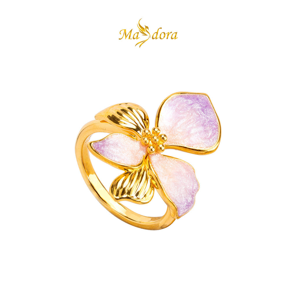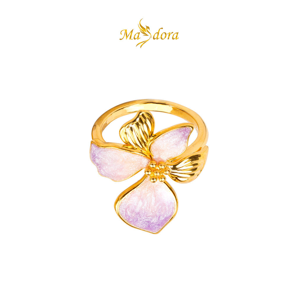 MASDORA 999 Gold Ring Rings Cincin Emas ~ Enormous Orchid (Violet) (EMAS 999/24K)