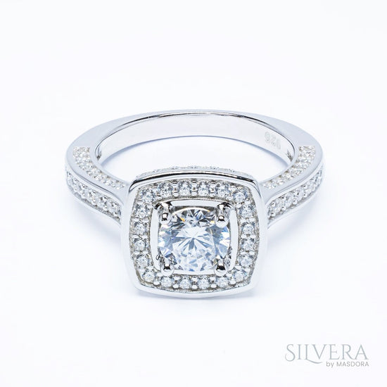 SILVERA 925 Silver Ring Rings Cincin Perak ~ Sparkle Square Halo Ring, 925 Silver by Masdora