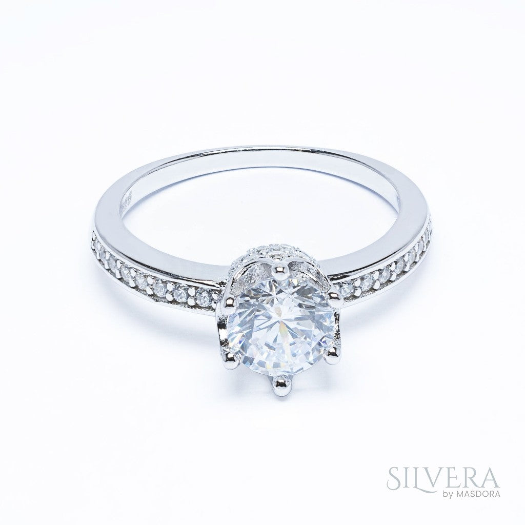SILVERA 925 Silver Ring Rings Cincin Perak ~ Sparkling Crown Solitaire Ring, 925 Silver by Masdora